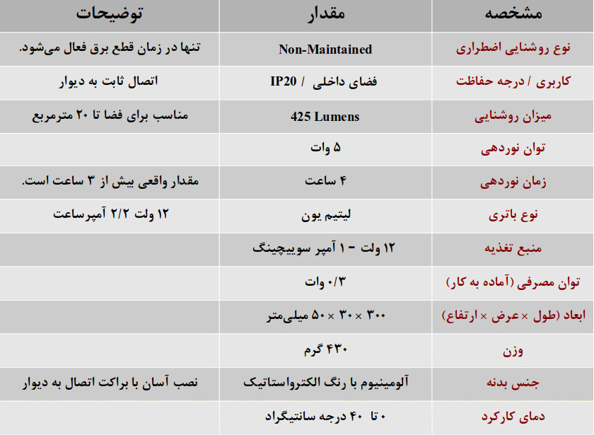 پاسخ: این چراغ اضطراری در صورتی فعال میشود که برق آن قطع شده باشد.